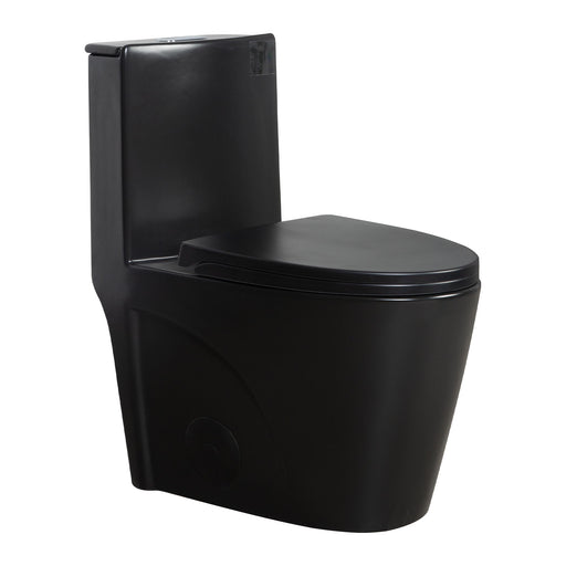 1.1 / 1.60 Gpf Dual Flush 1 Piece Toilet, Water Saving Elongated Comfort Height Floor Mounted, Soft Close Seat, 1000 Gram Map Flushing Score Toilet - Matte Black