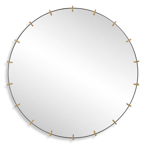 The Pali Round Mirror Successfully Pairs Contemporary And Industrial Styles With A Black Iron Strap Frame Accented By Lightly Antiqued Brushed Gold...