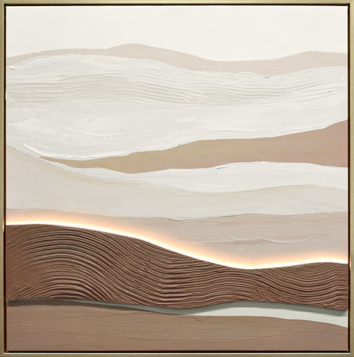 View full details"Desert Glow II" Hand-Embellished LED In Frame - Beige / Brown / White