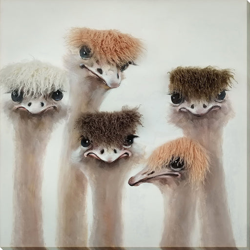 Bring a touch of whimsy to your space with 'Feathered Expressions,' a delightful acrylic painting capturing the quirky charm of ostriches. This han...