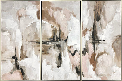 View full details"Ethereal Reflections" Hand-Embellished Canvas Triptych In Frame - Neutral