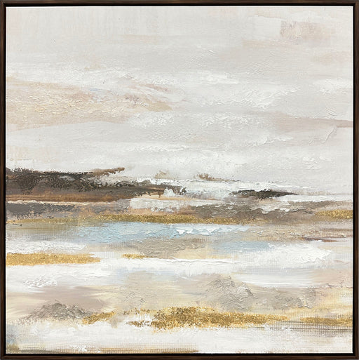 View full details"Tranquil Horizon I" Hand-Embellished Canvas In Frame - Cream / Light Blue / Brown