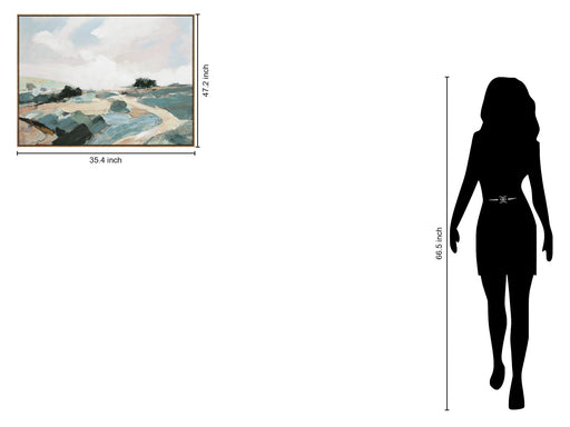 View full details"Tranquil Pathway" Hand-Embellished Canvas In Frame - Beige / Blue / Green