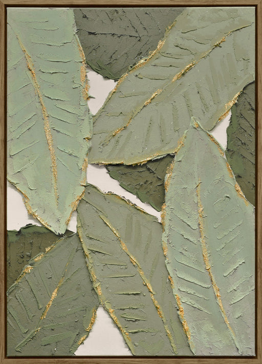 "Textured Foliage I" Hand-Embellished Canvas In Frame - White / Green / Wood