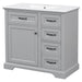 Bathroom Vanity With Ceramic Sink, Freestanding Design, 2 Tip Out Drawers, Soft Close Hinges - Gray