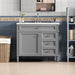 • Multi-Purpose Design: The vanity provides ample storage for toiletries and bathroom essentials, combining cabinet space and drawers to keep items protected from water and dust. Soft-close doors and water-resistant paint ensure durability and functionality.