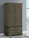 • Traditional Style Armoire: Features carved bases and curved mouldings for a classic look.