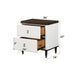 - Functional Nightstand: The nightstand offers two storage drawers with dimensions of 18"D x 26"W x 27"H. Made from a combination of wood, MDF, plywood, and veneer, it provides ample storage and can support up to 40 lbs on the top and 20 lbs per drawer.
