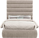 Revealing the silky, soft Adam beige chenille bed, showcasing deep channel tufting and a contemporary design to add a touch of modern elegance to your bedroom. Its fully slatted construction eliminates the need for a box spring, while the option to add additional panels allows you to customize the headboard height. Crafted for both style and durability, it becomes the centerpiece of your bedroom, creating a sophisticated and inviting atmosphere.