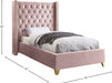 Elegant and eye-catching, the stunning Barolo Bed from Meridian Furniture is the perfect addition to any bedroom. velvet covers the deep tufted design. Strength and beauty is guaranteed with a solid wood frame and stainless steel legs.