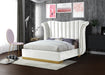 Make a dramatic statement while creating contemporary flair in the bedroom with this breathtaking Flora velvet bed. Featuring a metal base upholstered with rich velvet with nailhead accents and channel tufting along the headboard, this gallant bed is sure to command the attention of anyone who enters your bedroom chamber. Its contemporary wing-back design adds a regal presence to your sleeping space, while its generous size ensures you sleep like a.