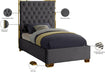 Make the Lana velvet bed part of your dream bedroom setup. This bed has all of the bells and whistles you want, including a super tall headboard that stands nearly five-feet tall. The bed is covered in velvet fabric for a luxe look, and it's deeply tufted for added luxuriousness. The headboard is soft and welcoming against your back and head as you read or watch TV in bed, and the bed rests on legs for dependable sturdiness and durability. Use it without a box spring or foundation, since the slats are included.
