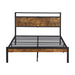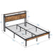 Queen Size Metal Platform Bed Frame With Wooden Headboard And Footboard With USB Liner, No Box Spring Needed - Brown