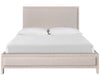The Tidal Bed showcases clean-lined upholstered panels beautifully framed in white rattan, creating a perfect balance of comfort and coastal style.