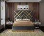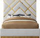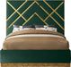 Take your bedroom space to a whole new modern level with this Vector velvet bed. Posh velvet upholstery in a lovely color is intersected by polished metal in a geometric design that is nothing short of spectacular. This stunning bed has a metal base to finish off the presentation on a glamorous and upscale note. slats are included with the bed to help provide support for your mattress, and the platform footprint ensures you need no box springs or foundation to recreate this look at home.