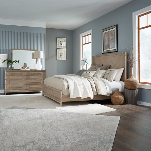 Add a natural feeling to your living space using the Thornwood Hills panel bed. The rock beaten gray finish is highlighted by saw cuts and hammered...