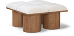 Bring valuable seating and remarkable style to your space with this Pavilion boucle fabric bench, an exquisite balance of style and usability for the entryway, bedroom, and beyond. Crafted from oak veneer with a walnut brown finish, this bench has a 4-inch-thick seat cushion that's channel-tufted for a touch of luxury. The bench's columnar bases add a dash of art deco design, making it a captivating focal point in any room.