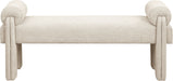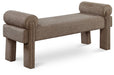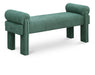 Banish boredom in your room's decor with this Stefano polyester fabric bench. The perfect bench to rest at the end of your bed in the master suite or in a spot of interest in the foyer or entryway, this lovely art deco seat has loads of room to sit while you pull on boots or take off shoes. The soft polyester fabric is lovely to the touch, and the rounded arm pillows give it an extra inviting feel.
