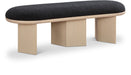Immerse your entryway, living room, or bedroom in elegance with our stunning Wilshire boucle fabric bench. The rich solid wood natural oak finish triple-columnar base not only offers stability but also adds a touch of warmth to the bench's art deco design. Sink into the plushness of this bench, inviting you to relax in comfort and style. Place this pretty bench wherever you need extra seating - it's an ideal blend of form and function.