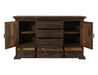 6 Drawer & 2 Door, Dresser. Introducing the exquisite Desire Dresser, expertly crafted from solid wood to enhance both style and functionality in your space. This Dresser features a sophisticated multi-step lacquer finish that highlights the natural grain of the wood. With its elegant deep brown color, the collection blends modern and traditional elements, making it a timeless addition to your home. The durable mortise and tenon construction ensures long-lasting quality, while the six spacious drawers come with solid wood fronts and English dovetail joints for added strength. Hafele steel slides provide smooth operation for the drawers. Additionally, the Dresser includes two cabinets for versatile storage solutions, and the sleek metal pulls with a non-chip matte black finish add a touch of modern elegance to this classic piece. For a complete look, pair the dresser with the Desire Mirror.