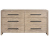 Crafted in a warm finish, the Six Drawer Dresser blends natural texture with clean, modern lines. Its framed drawer fronts and sleek hardware create a sophisticated storage solution, perfect for adding both functionality and a touch of architectural detail to your bedroom.