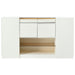 Modern Luxury Multi-Functional Island Vanity Dresser And Storage Cabinet With Glass Tabletop, Display Shelf, 6 Drawers For Walk In Wardrobe And Bedroom - Cream White