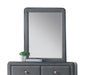 - Stylish Frame: The frame is upholstered in light gray fabric with a black welt trim, adding subtle sophistication and texture to the mirror's appearance.