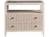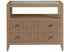 The Carmen Two-Drawer Nightstand is a stylish and functional addition to any bedroom. Its two spacious drawers, adorned with sleek metal ring pulls, offer ample storage for bedside essentials. The open shelf, accented by an inset stone top, adds a touch of luxury and provides a convenient space for displaying books or decorative objects.
