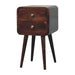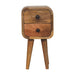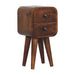 - Artisan Furniture Solid Wood Curved Nightstand, 2 drawer - Endlessly versatile, this curved bedside table makes a perfect stand for nibbles, drinks, or a lamp. It will prove handy all over your home and is made from 100% solid mango wood and has a fine finish. It has curved edges which will fit into any home/living space. It also comes with 2 drawers that come with shiny knobs and 4 Nordic style legs.
