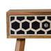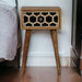 - Bone Inlay Tapered Nightstand - This nightstand features a stylish and modern design. The beautiful bone inlay design stands out and will give your home a classy and sophisticated vibe. It has been constructed from 100% solid mango wood with tapered legs. The bone inlay is sourced responsibly from deceased animals such as camels, goats, and buffaloes.