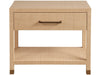 The Leah Nightstand, with its single drawer and full raffia-wrapped body, makes a textured statement in any bedroom. Bold bar hardware and leg accents add a touch of sophistication, enhancing the piece's rich texture and visual depth.