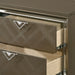 - Modern Appeal: The mirrored beveled trim reflects light to enhance its modern appeal, while the acrylic tapered legs add a touch of contemporary sophistication to the piece.