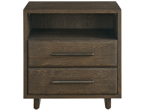 The Two Drawer Nightstand offers bedside convenience with a touch of architectural elegance. Finished in a warm, its clean lines and framed drawer ...