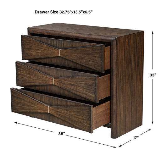 Bowtie - 3 Drawer Mid-Century Chest - Dark Brown