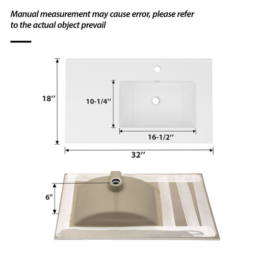 View full detailsRectangular Single Vanity Top With 1 Faucet Hole And Overflow, 32" X 18", Spacious Left Countertop For Storage - White