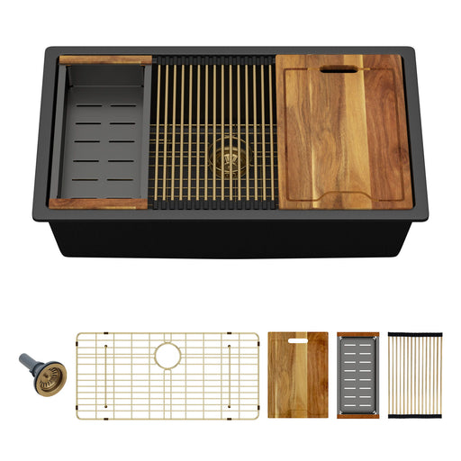 View full detailsWorkstation Kitchen Sink 30" X 18" X 10" Single Bowl Undermount 16 Gauge - Gunmetal Black