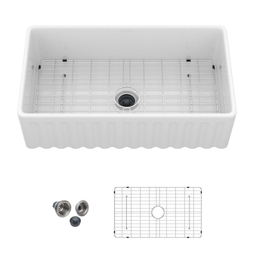 Classic Farmhouse Design: Clean white porcelain finish with an apron-front panel available in smooth or ribbed texture for versatile aesthetic app...
