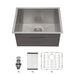 Premium Undermount Laundry Utility Sink 23" Deep Single Bowl 16 Gauge Stainless Steel In - Brushed Nickel