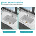 - Dual Mount Installation: Compatible with undermount and top mount setups for flexible integration with various countertops