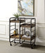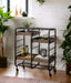 - Sleek Design: Featuring a sophisticated black and walnut brown finish, this serving cart adds a touch of elegance to any setting while maintaining functionality with its open metal frame design.