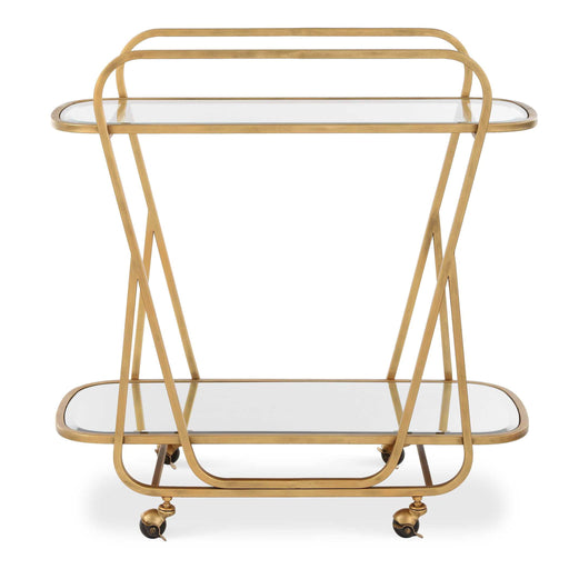 A Refined Serving Cart, Forged With A Beautiful Soft Gold Leaf Finish Made Completely From Iron. The Two Tray Style Glass Shelves Allow The Beauty ...