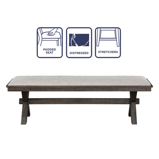 Rustic Ranch styling in a distressed finish with upholstered seat for added comfort. This bench is a full 60 inches in length to to seat up to 4 pe...