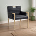A perfect fusion of modern elegance and eco-friendly luxury is the Aimee vegan leather dining armchair. Upholstered in sleek vegan leather, this chair offers a chic, contemporary look while maintaining a commitment to sustainable living. The padded, quilted design featuring solid natural oak wood legs and armrests creates a stunning contrast between its soft upholstery and minimalist frame.