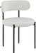 Bring modern comfort to the dining room with this Beacon vegan leather and boucle fabric dining chair. Exquisitely designed to be one part utilitarian seat and one part art, this stylish chair turns heads from all angles. The seat comes upholstered in vegan leather for a luxe look while the back is covered in rich boucle fabric. The iron metal frame features a matte black finish for an unmistakably modern look.