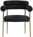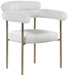 Comfort comes to mealtime with this Blake boucle fabric dining chair. This lovely chair is just the right choice for your modern dining room, with its curved back that cradles you in comfort while you wine and dine the night away. A thickly padded soft boucle fabric seat lends this chair a sleek, upscale look while ensuring its ongoing performance and beauty. The chair's brushed brass finish protects its all-metal iron frame.
