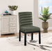 Transform your dining area with the Evelyn dining chair, featuring luxurious velvet upholstery. Supported by rich black solid ash wood legs and detailed with deep channel tufting, this chair exudes both durability and opulence. The 460 GSM velvet offers a sumptuous texture, while the contemporary design ensures it makes a striking addition to any space. This chair seamlessly blends style and comfort, perfect for creating a refined dining experience.