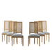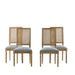 French Country Dining Chairs (Set of 4) Elegant Cane Backrest & Upholstered Seats Rustic Weathered Solid Rubberwood Frame - Slate Blue