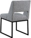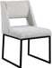Give your dining area a contemporary makeover with this Jayce cream boucle fabric dining chair. Featuring a matte iron base and rich boucle fabric, this dining chair is both sturdy and cozy. Its contemporary design is ideal for any modern home, and its neutral color matches any color dining table. Its plush boucle upholstery provides you with a comfortable pace to sit, and its open rectangular back is stylish while adding spine support.