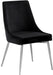 Extend contemporary panache to the dining room with this Karina Dining Chair. This dining chair features upholstery in sleek velvet for a modern look and has an armless design for a retro-inspired vibe. The stark color makes it easy to blend in with your existing decor colors or make a contrasting statement with ease. The slanted legs of this chair are finished for added modernity and to provide reliable and durable support while you dine.