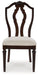 Serve up elegance and poise with this dining chair. Its traditional silhouette is detailed with a stylized back for added opulence. The cushioned seat, crisply tailored in textured tan fabric, provides added comfort. From breakfast to dinner, this chair elevates your dining experience with classic beauty.